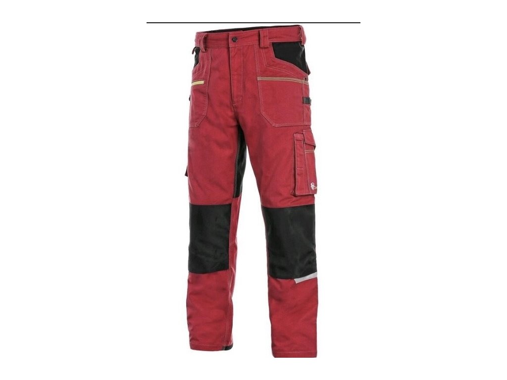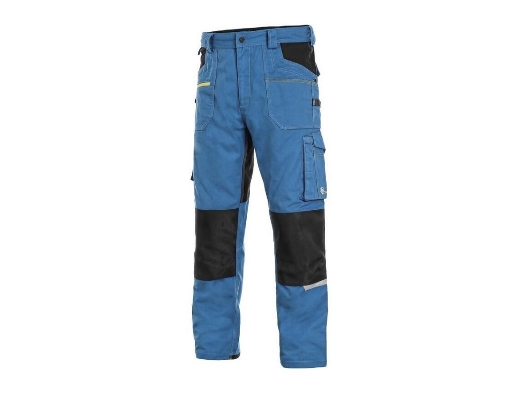 Pánske montérkové nohavice CXS Stretch. Strečová tkanina umožňujúca voľný pohyb. Pás s pútkami na opasok. Predné vrecká s vreckom na zips. Multifunkčné vrecká na oboch stranách. Kolená zosilnené 600D polyesterom, s možnosťou vloženia kolenných výstuží. Dve zadné vrecká. Zadný spodný lem nohavíc vystužený 600D polyesterom. S reflexnými doplnkami. Materiál: bavlna 98%, elastan 2%.