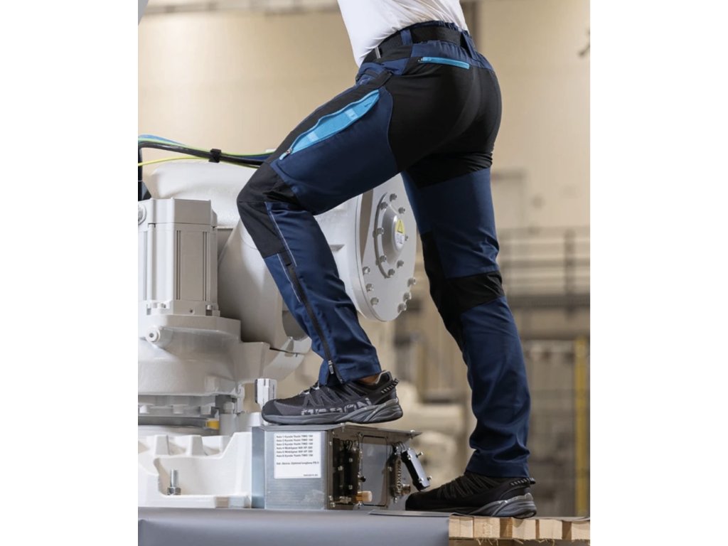 Montérkové nohavice do pása so strečovými vložkami sú navrhnuté pre maximálny komfort a dlhú životnosť. Kombinácia moderných materiálov zaručuje vynikajúcu pevnosť, pružnosť a odolnosť aj v náročných podmienkach. Nohavice sú vyrobené zo špeciálnej tkaniny so zosilnenými panelmi Cordura® na maximálnu ochranu namáhaných častí proti oderu. Anatomický strih 3D Silhouette COMFORT FIT umožňuje voľnosť pri pohybe, ergonomicky navrhnuté línie zaisťujú pohodlné nosenie a bočné ventilačné zipsy so sieťovinou pomáhajú odvádzať teplo. Elastický pás umožňuje pohodlné prispôsobenie obvodu pása. Nohavice sú vybavené nitmi pre vyššiu životnosť a kovovým D-krúžkom na uchytenie predmetov. Prakticky riešené vrecká zahŕňajú 2 hlboké priehmatové vrecká, 2 vrecká na zips na mobilný telefón a drobnosti a dve multifunkčné vrecká na zips na zadnej strane nohavíc. Na zvýšenie bezpečnosti sú nohavice vybavené dynamickými reflexnými prvkami, ktoré zabezpečujú lepšiu viditeľnosť pri práci v zhoršených svetelných podmienkach. Spodný lem nohavíc dopĺňajú zipsy, ktoré umožňujú rozšírenie obvodu nohavíc na ľahké pretiahnutie nohavíc cez širšiu obuv a sú vybavené skrytými kovovými háčikmi, aby nohavice perfektne držali na svojom mieste. Nohavice sú kompatibilné s prídavnými vystuženými vreckami na náradie, ktoré sú určené na pripevnenie k opasku pomocou suchých zipsov.